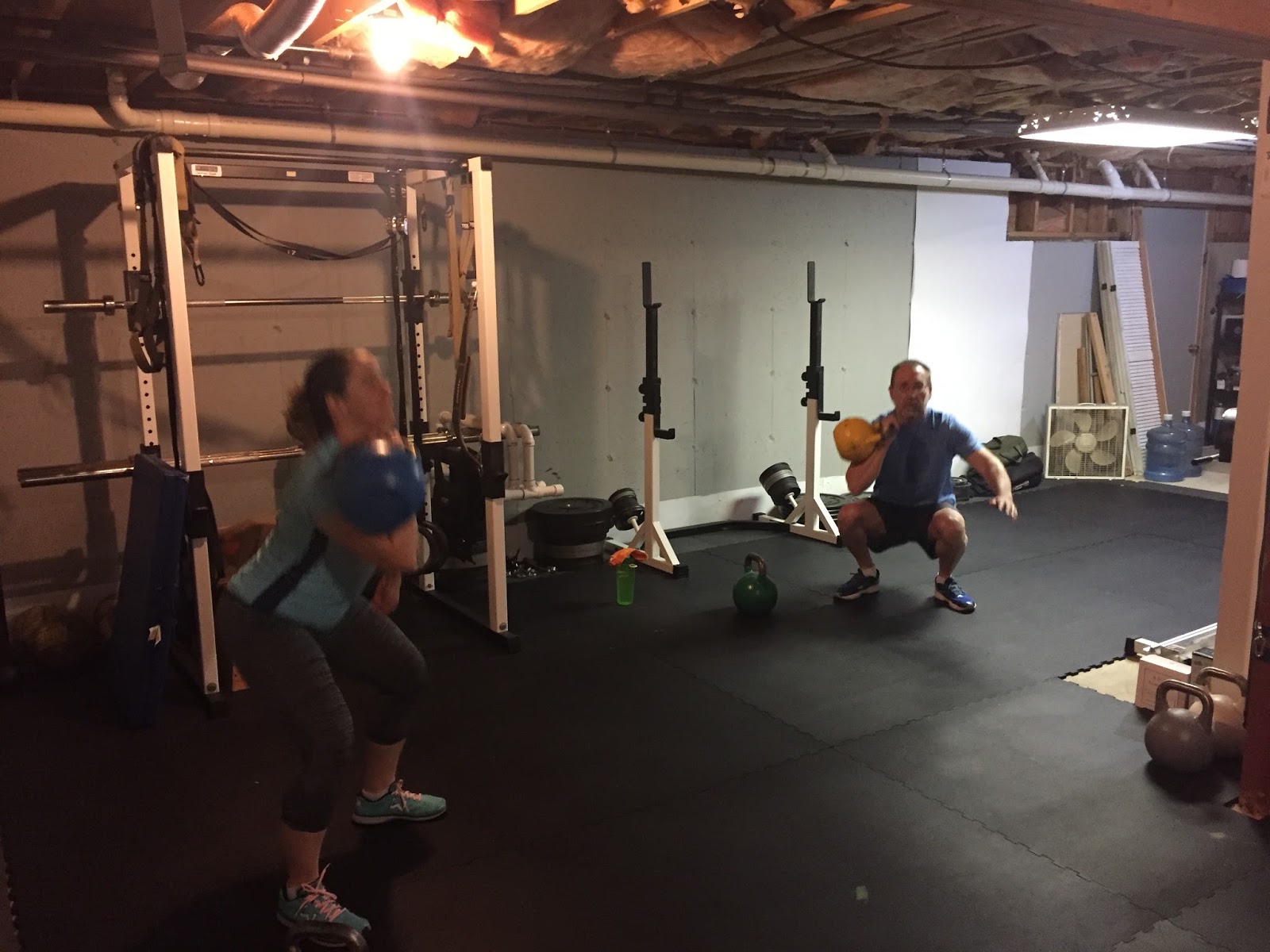 Second: 64 squats, 32 KB swings, 16 Ring Rows, 8 C&P